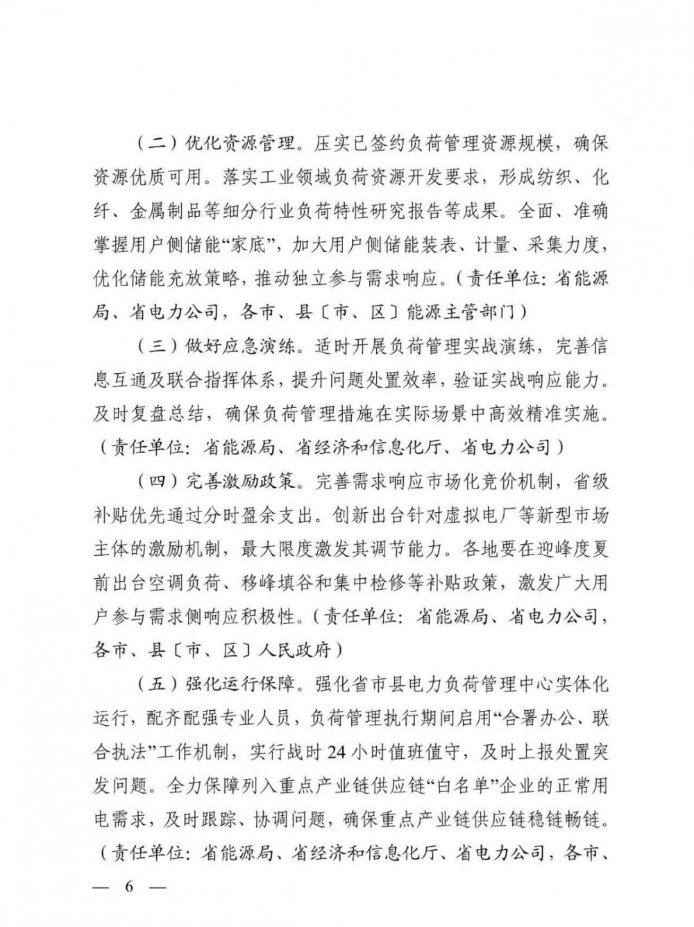优化资源管理。压实已签约负荷管理资源规模,确保资源优质可用。落实工业领域负荷资源开发要求,形成纺织、化纤、金属制品等细分行业负荷特性研究报告等成果。全面、准确掌握用户侧储能“家底”,加大用户侧储能装表、计量、采集力度,优化储能充放策略,推动独立参与需求响应。