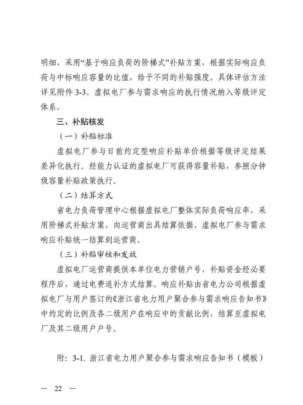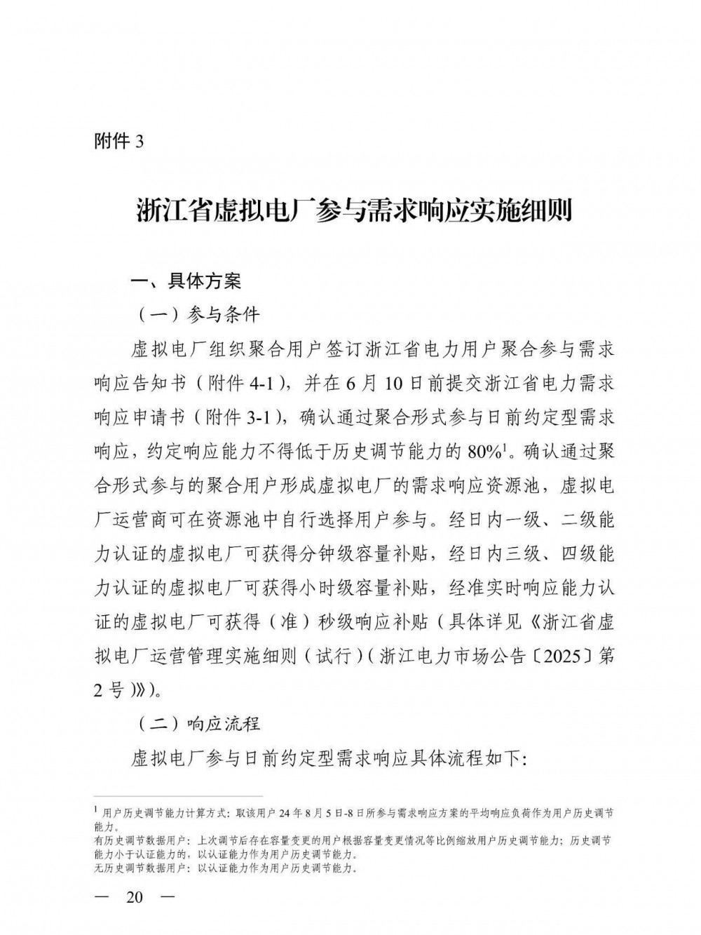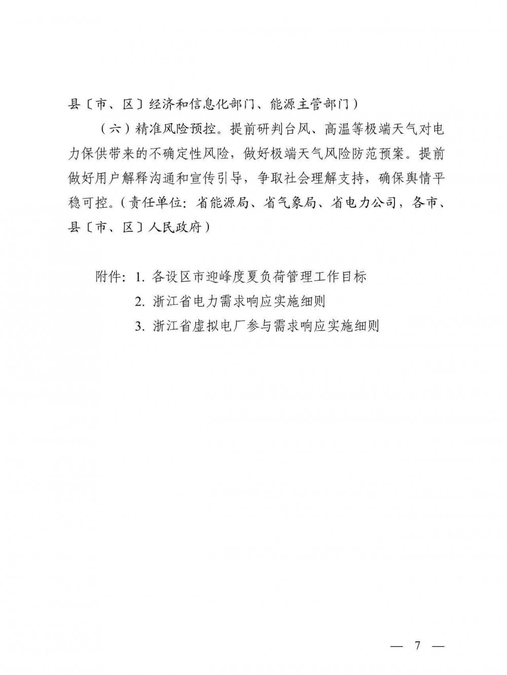 鼓励虚拟电厂参与响应。根据《浙江省虚拟电厂运营管理细则(试行)》和《浙江电力领域新型主体市场化响应实施细则(试行)》,规范引导虚拟电厂等新型经营主体参与市场化响应、需求响应等业务,实现供需紧平衡、供需缺口等各种场景下常态参与负荷调节,力争调节能力达100万千瓦。