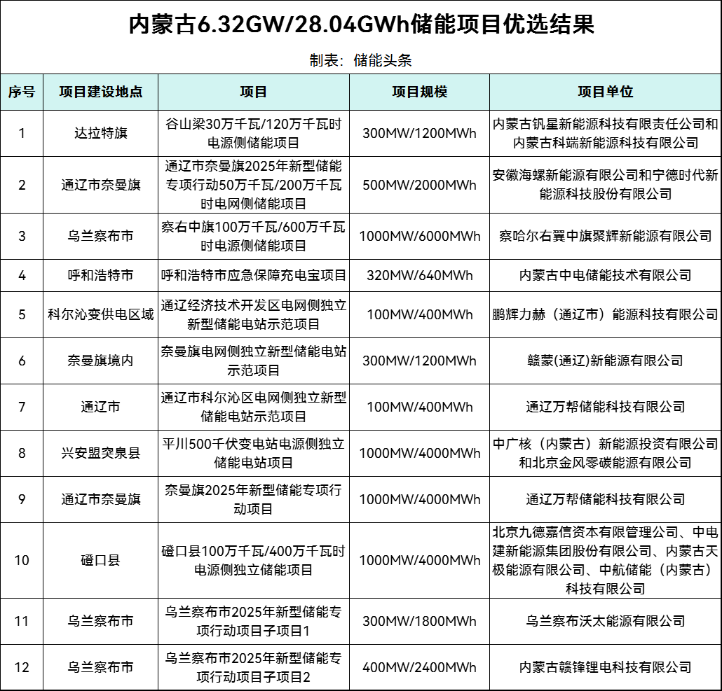 内蒙古28.04gwh储能项目业主优选:涉及中广核、中电建、万帮数字能源、赣锋锂业等