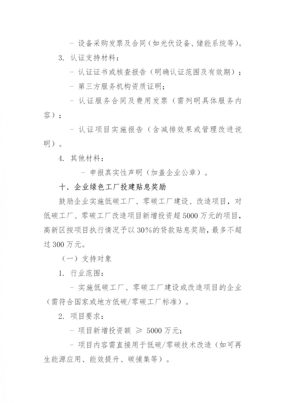 第十条.鼓励企业实施低碳工厂、零碳工厂建设、改造项目,对低碳工厂、零碳工厂改造项目新增投资超5000万元的项目,高新区按项目执行情况予以30%的贷款贴息奖励,最多不超过300万元。