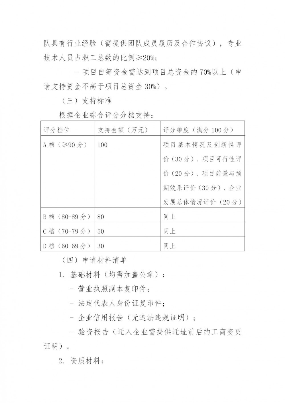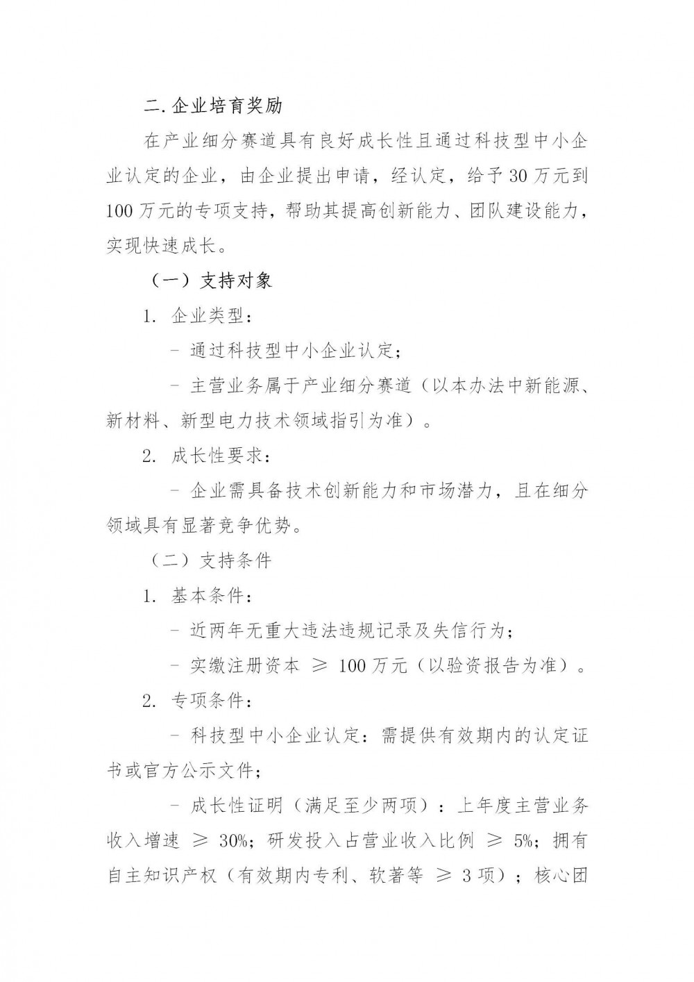 第二条.在产业细分赛道具有良好成长性且通过科技型中小企业认定的企业,由企业提出申请,经认定,给予30万元到100万元的专项支持,帮助其提高创新能力、团队建设能力,实现快速成长。