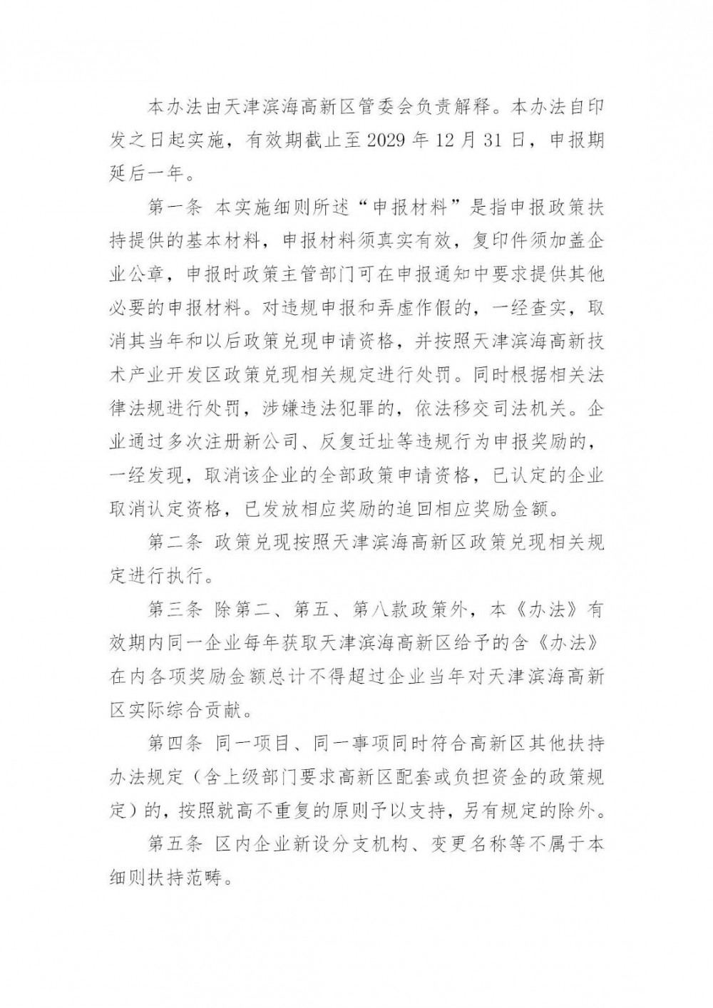 本办法由天津滨海高新区管委会负责解释。本办法自印发之日起实施,有效期截止至2029年12月31日,申报期延后一年。