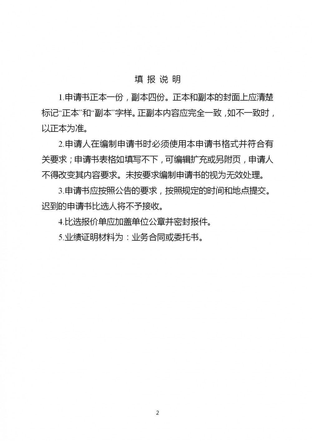 参与报名的单位按以上要求,自愿报名并提交比选申请书(附件)。申报材料需提交纸质资料一式五份,正本一份,副本四份,需密封、加盖单位鲜章并标注好正副本。申报材料具体内容包括但不限于: