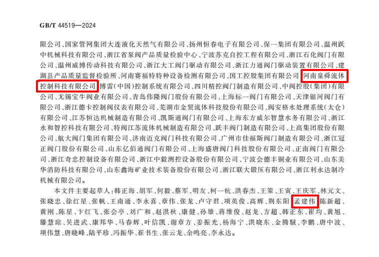 泉舜流控参与起草的国家标准《工业阀门 阀门用齿轮箱》gb/t 44519-k8凯发