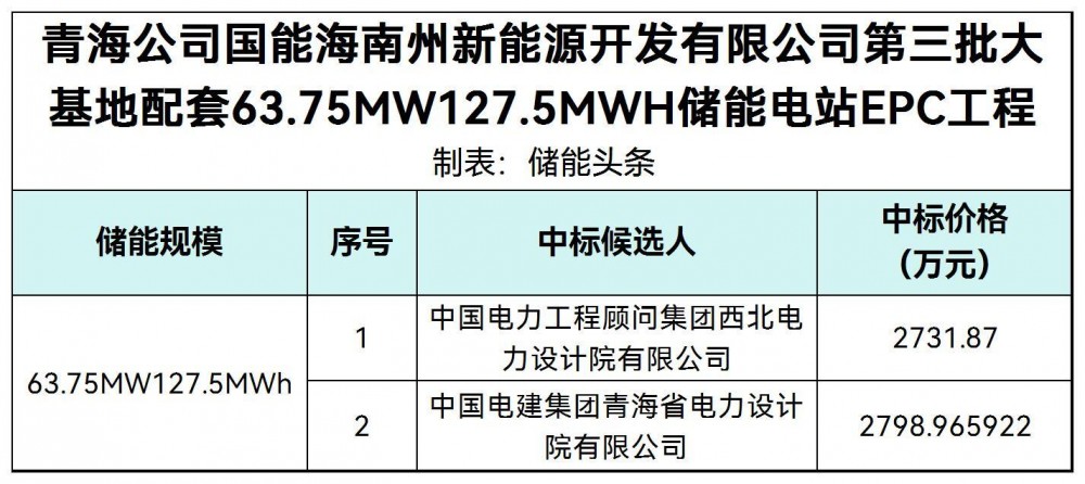 青海公司国能海南州新能源开发有限公司第三批大基地配套63.75mw127.5mwh储能电站epc工程公开招标项目中标候选人公示