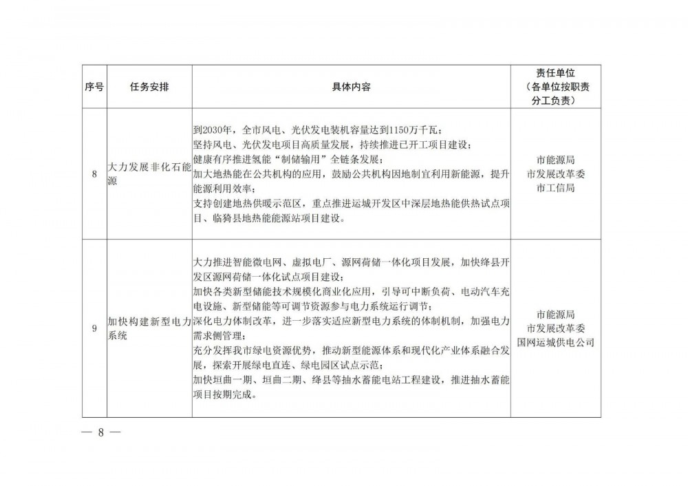 为贯彻落实《山西省人民政府关于印发山西省快经济社会发展全面绿色转型行动方案的通知》(晋政发〔2025〕2号)精神,不断深化全方位转型,扎实推动运城市经济社会高质量发展,特制订《运城市加快经济社会发展全面绿色转型行动重点任务清单》,请认真学习贯彻,抓好推进实施。