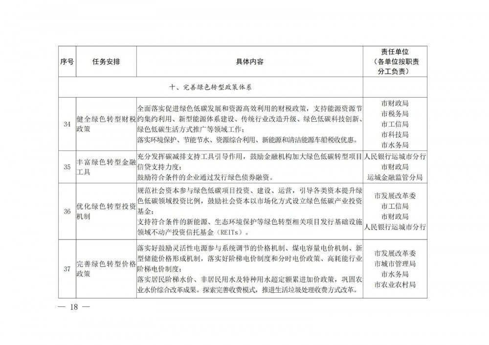 附件:运城市加快经济社会发展全面绿色转型重点任务清单