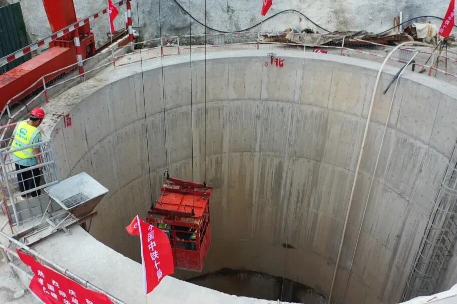 特别是通风兼安全竖井井口邻近河沟、地下水位较高,且井口段围岩以强风化花岗岩夹漂卵石混合土为主,开挖至15米以下后出现井内渗水。一线作业人员优化施工工艺,摒弃传统的先大面积挖掘再整体衬砌支护的方式,采用“边开挖边衬砌支护”的方法,有效防范安全隐患。