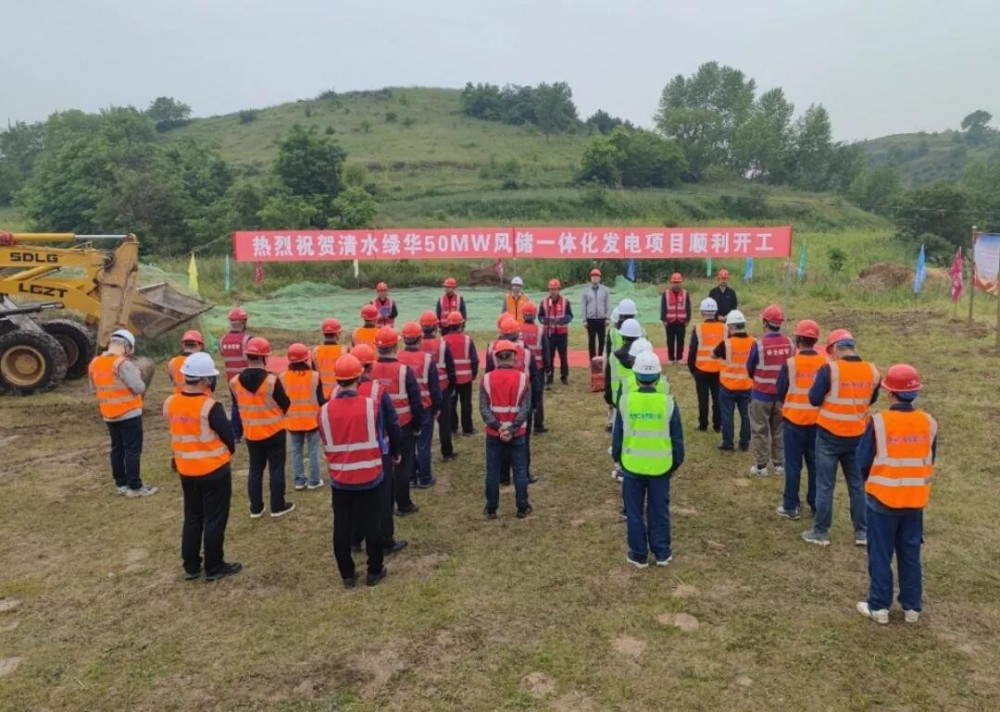6月24日上午,甘肃公司清水绿华50兆瓦风储一体化发电项目全面开工。