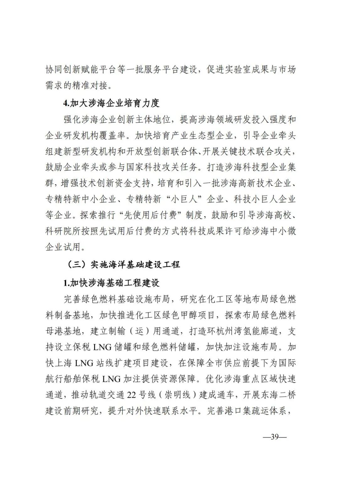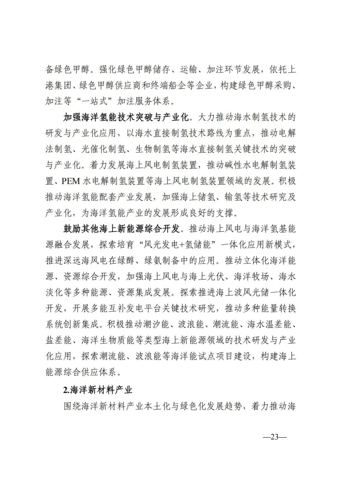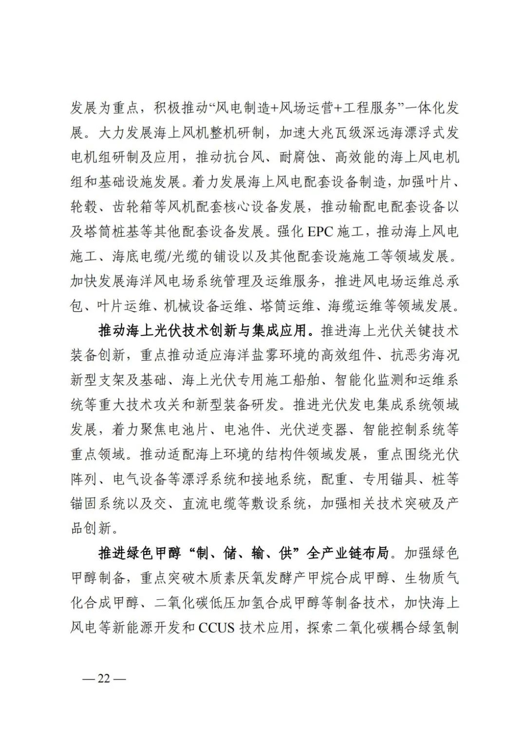 文件指出,内容还指出,鼓励其他海上新能源综合开发。推动海上风电与海洋氢基能源融合发展,探索培育“风光发电 氢储能”一体化应用新模式,推进深远海风电在绿醇、绿氨制备中的应用。推动立体化海洋能源、资源综合开发,加强海上风电与海上光伏、海洋牧场、海水淡化等多种能源、资源集成发展。探索推进海上波风光储一体化开发,开展多能互补发电平台关键技术研究,推动多种能量转换系统创新集成。