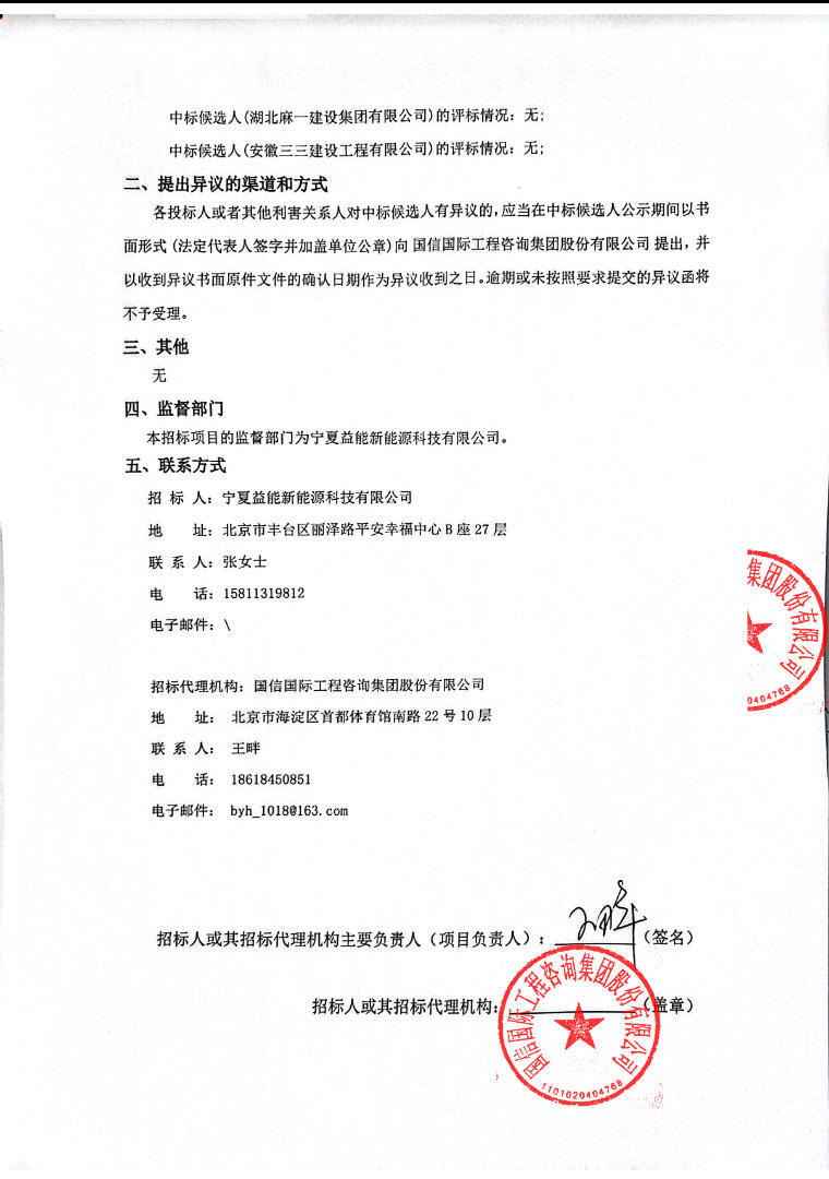 项目中标候选人公示。