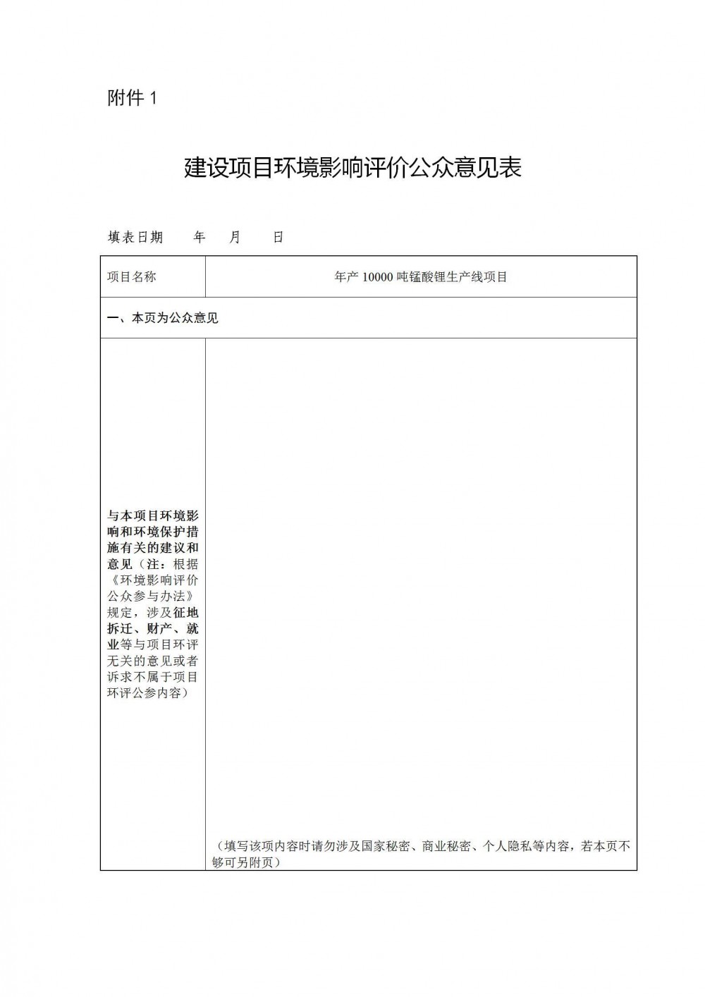 年产10000吨锰酸锂生产线项目环境影响评价第一次公示