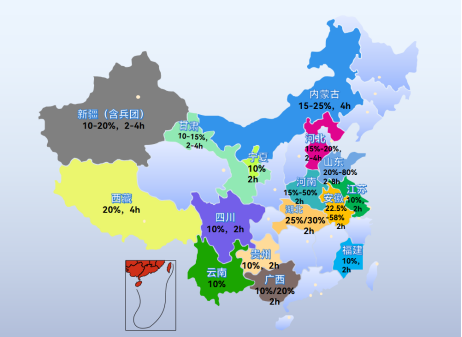 2021-2023年,多地政策不断强化配储要求,配储比例从10%-20%逐步上升至15%-30%,储能时长从1-2小时抬升至4-5小时。