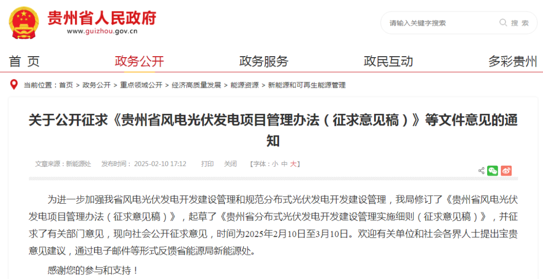 在136号文发布的次日,贵州省能源局发布了《贵州省风电光伏发电项目管理办法(征求意见稿)》。其中提到,纳入贵州省风电、光伏发电年度建设规模计划并按规定时序建成的项目,实行保障性并网,并按要求配置项目建设装机容量10%(满足2小时运行要求)以上储能或购买储能服务。