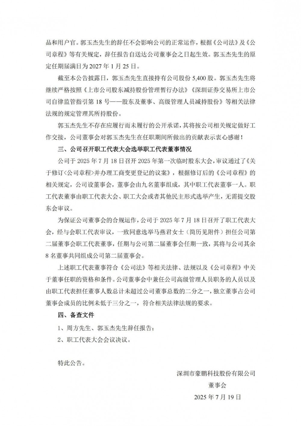 公司董事会于近日收到公司副总经理郭玉杰先生的辞任报告。鉴于公司治理架构调整,郭玉杰先生申请辞去副总经理职务,辞任后仍担任公司董事及首席产品和用户官。