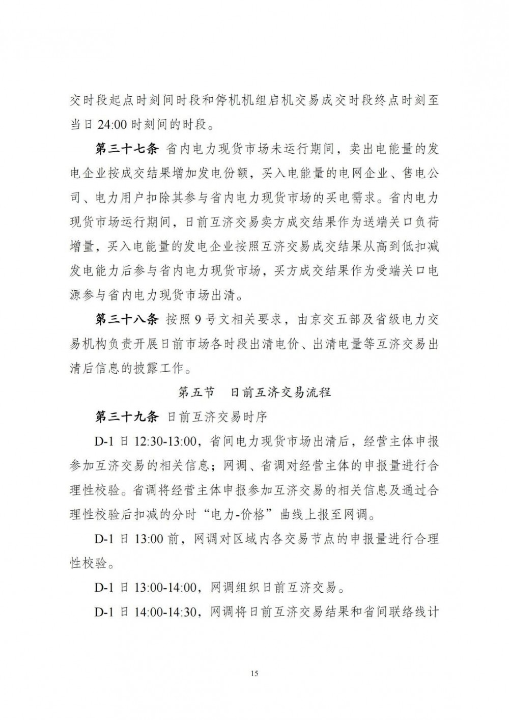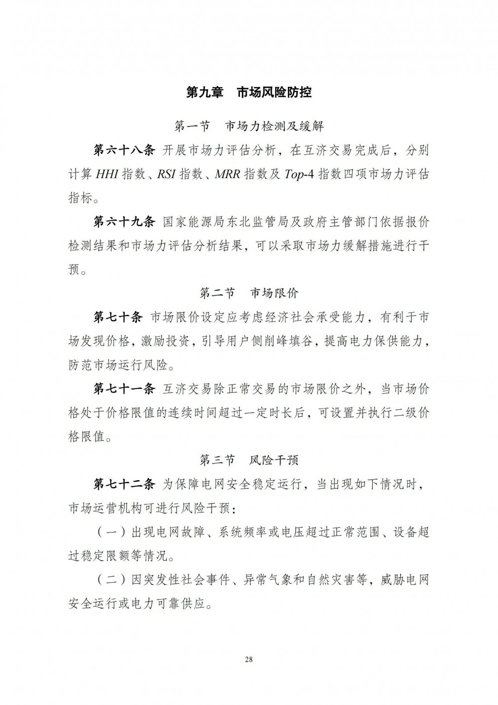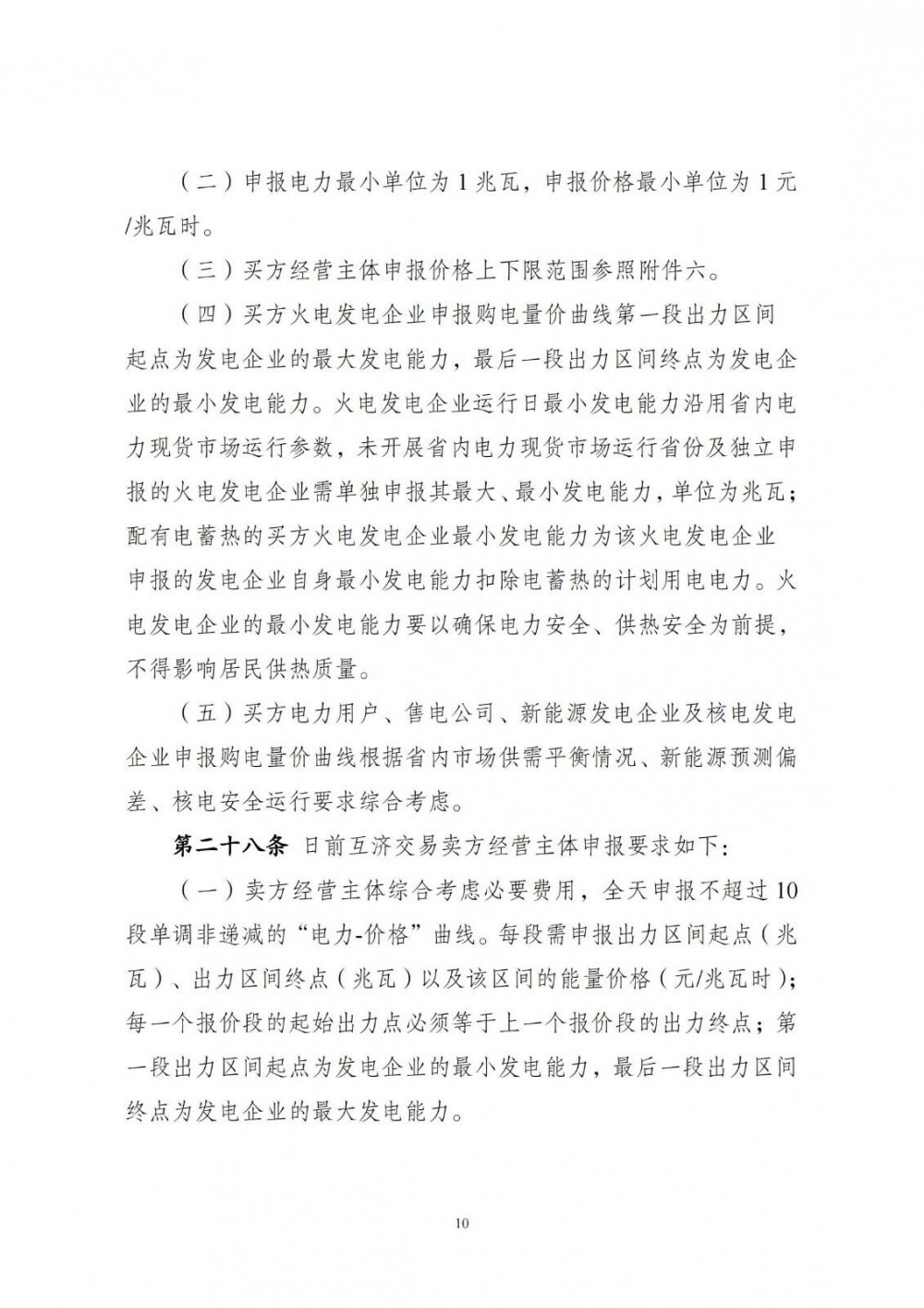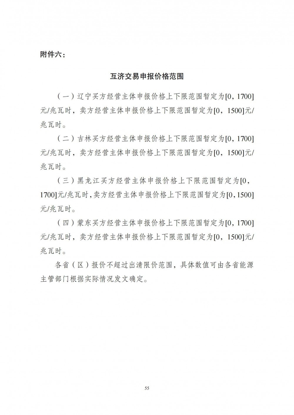 辽宁、吉林、黑龙江、蒙东买方经营主体申报价格上下限范围暂定为[0,1700] 元/兆瓦时,卖方经营主体申报价格上下限范围暂定为[0,1500]元/ 兆瓦时。