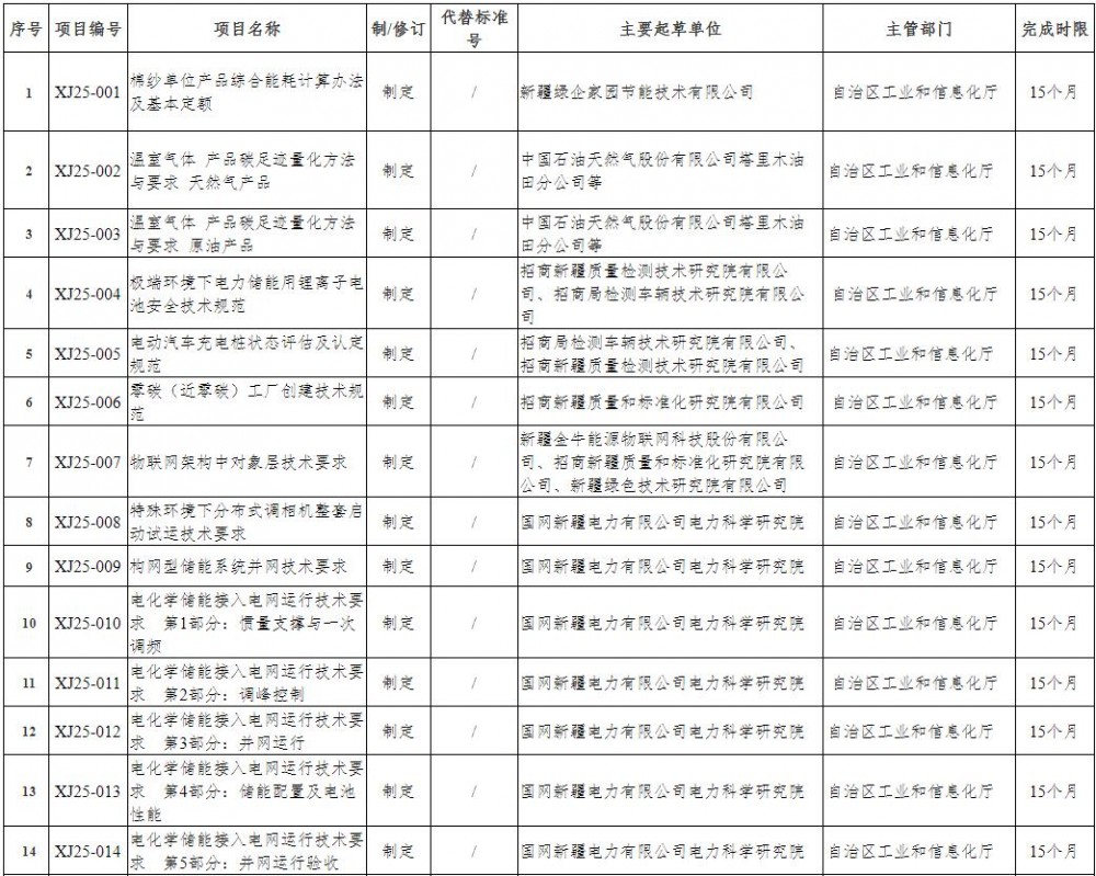 经研究,新疆维吾尔自治区市场监督管理局决定印发2025年第一批自治区地方标准制(修)订计划,立项《棉纱单位产品综合能耗计算办法及基本定额》等137项地方标准(见附件),现予以通告。