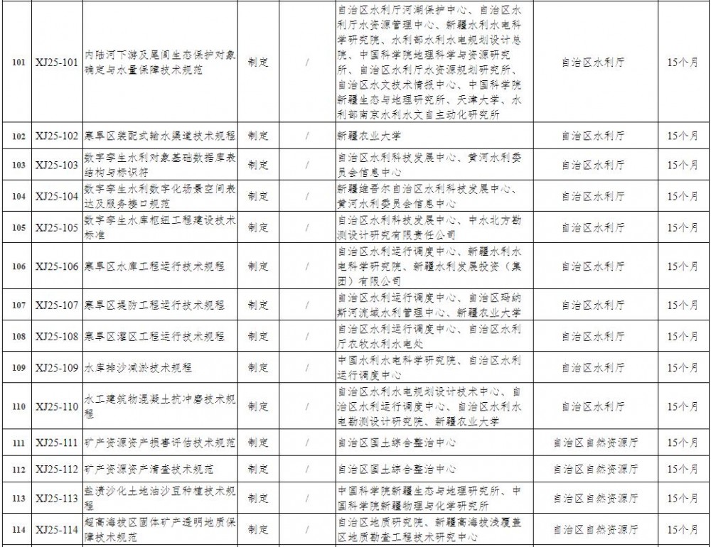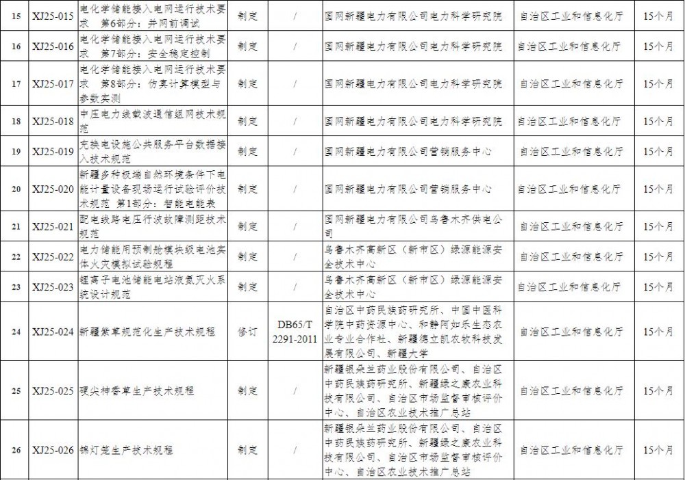 2025年第一批自治区地方标准制(修)订计划项目汇总表