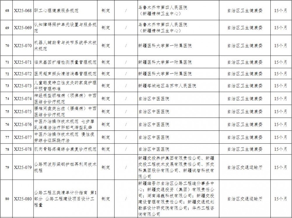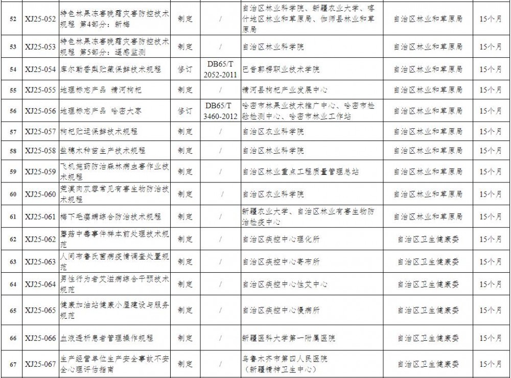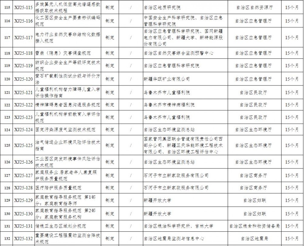 近日,新疆维吾尔自治区市场监督管理局关于印发2025年第一批自治区地方标准制(修)订计划项目的通告发布。