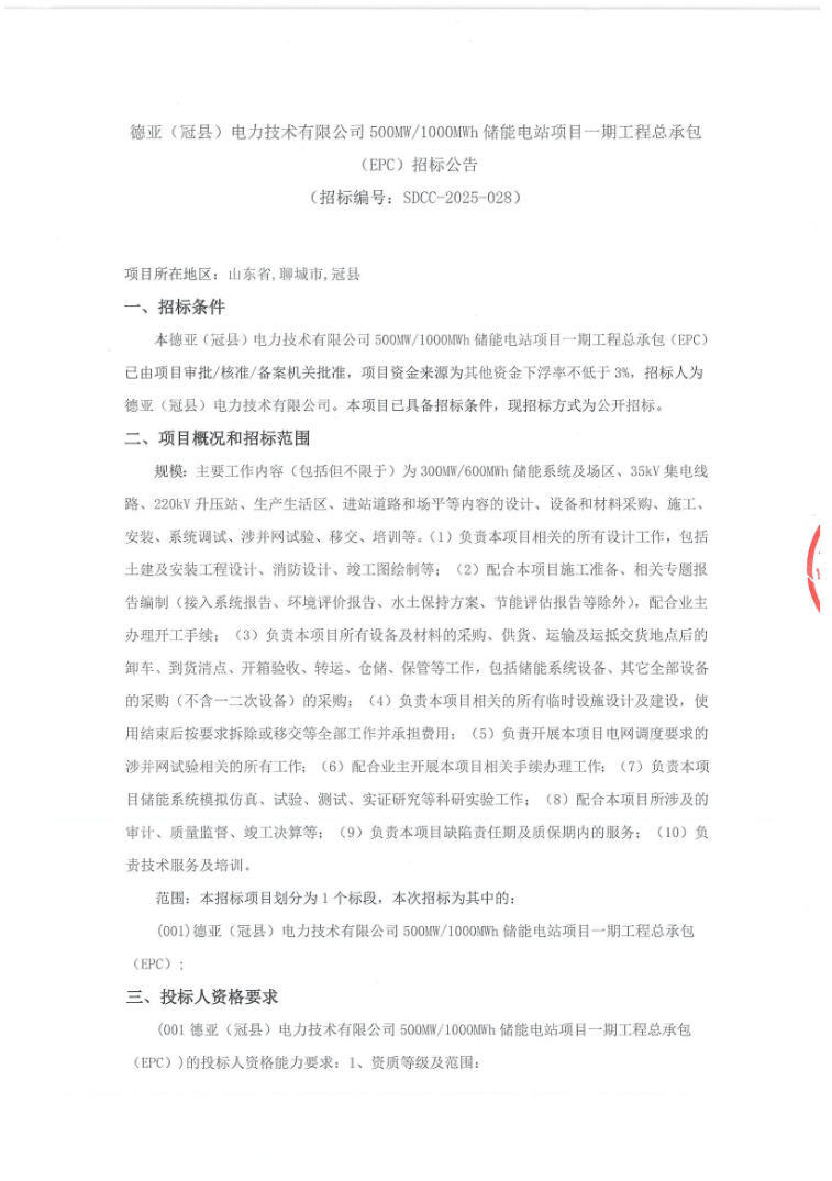 项目一期工程总承包(epc)招标公告发布。