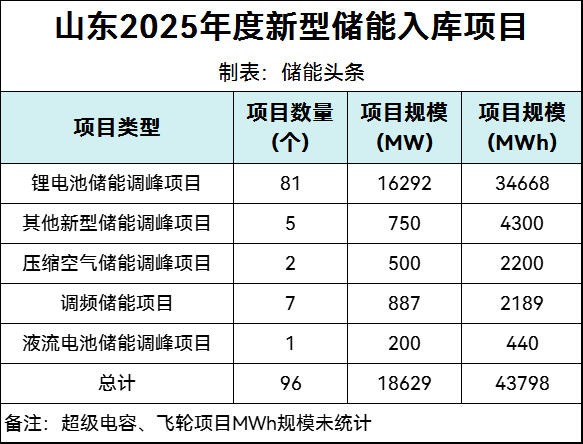 7月9日,山东省能源局公示了2025年度新型储能入库项目清单,共96个项目,总规模超18.6gw/43.8gwh。