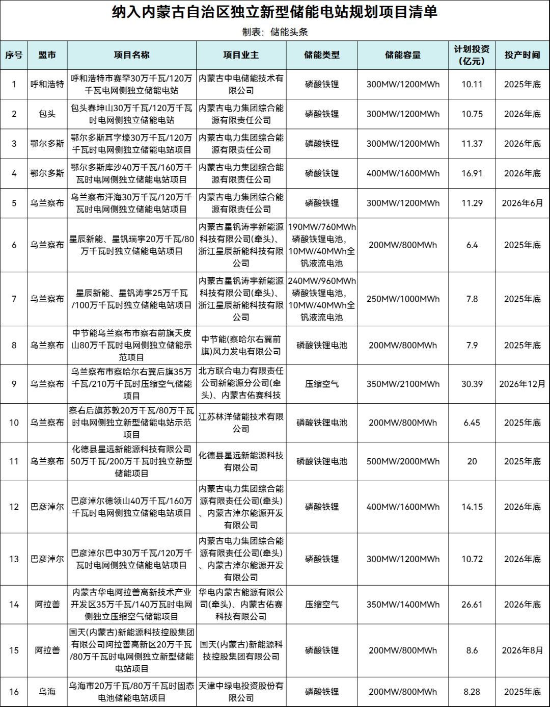 5月30日,内蒙古自治区能源局发布2025年第一批独立新型储能建设项目清单,有16个项目纳入自治区独立新型储能电站规划。本批次独立储能装机容量共4.75gw/19.7gwh。