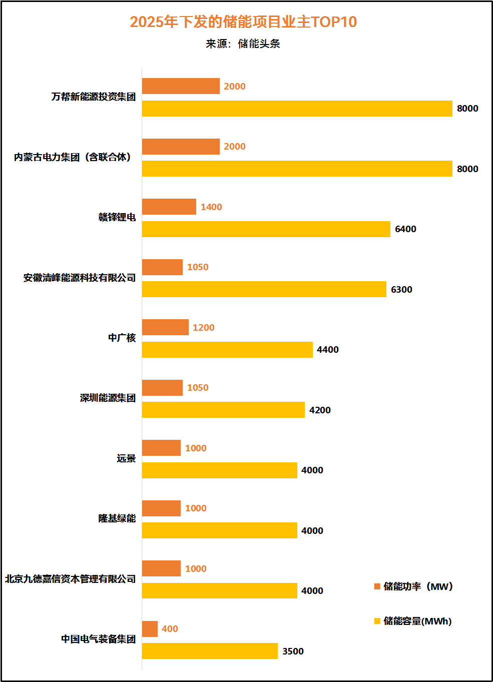 从项目业主分布上看,万帮新能源、赣锋锂电、安徽清峰领衔,分别取得储能项目容量2gw/8gwh、1.4gw/6.4gwh、1.05gw/6.3gwh。