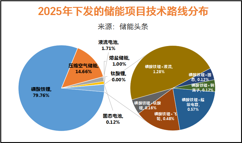 主要包含了磷酸铁锂项目、压缩空气储能项目、全钒液流电池储能、超级电容四种技术类型。