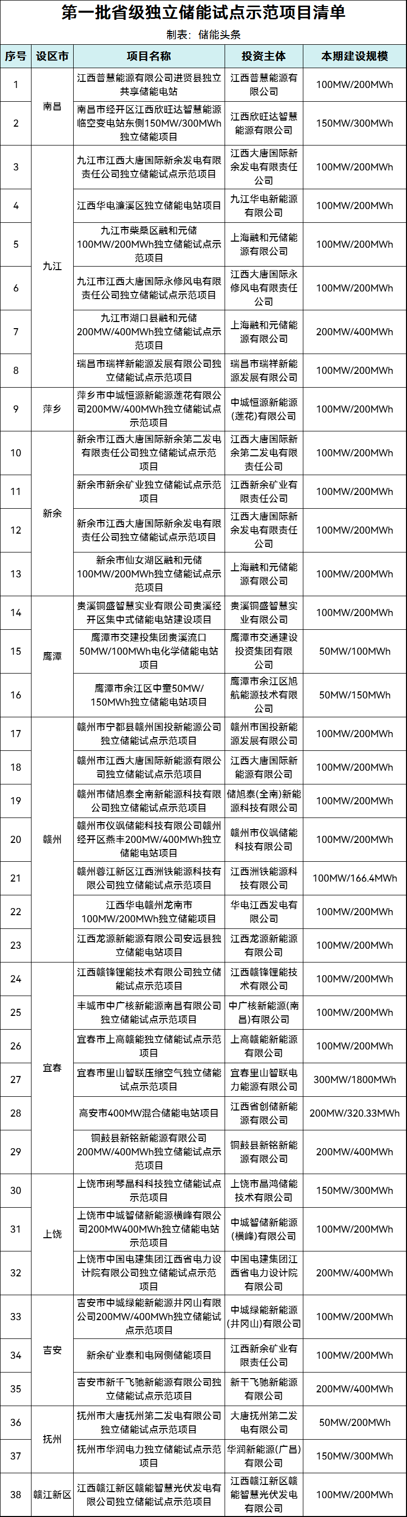 近日,江西省能源局印发《第一批省级独立储能试点示范项目清单的通知》。