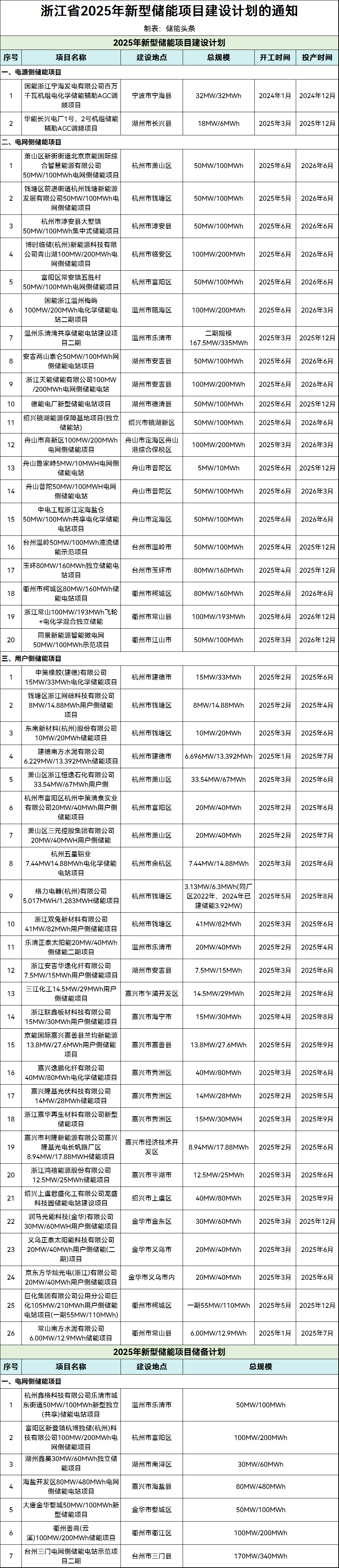 3月3日,浙江省能源局印发2025年新型储能项目建设计划的通知。2025年,浙江纳入建设与储备计划的项目共55个总规模2.51gw/5.27gwh。