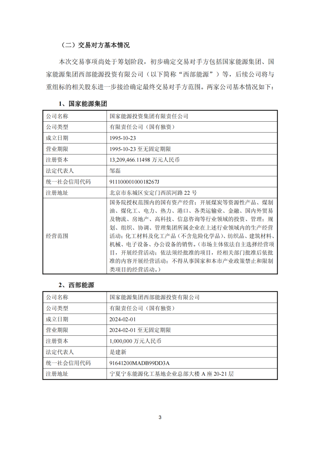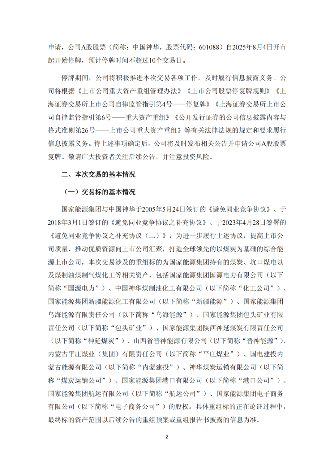 中国神华表示,本次交易是为了履行公司与控股股东之间的避免同业竞争协议,以及提高上市公司质量,推动优质资源向上市公司汇聚,打造全球领先的以煤炭为基础的综合能源上市公司。公告同时明确,具体重组标的正在论证过程中,最终标的资产范围以后续公告的重组预案或重组报告书披露的信息为准。