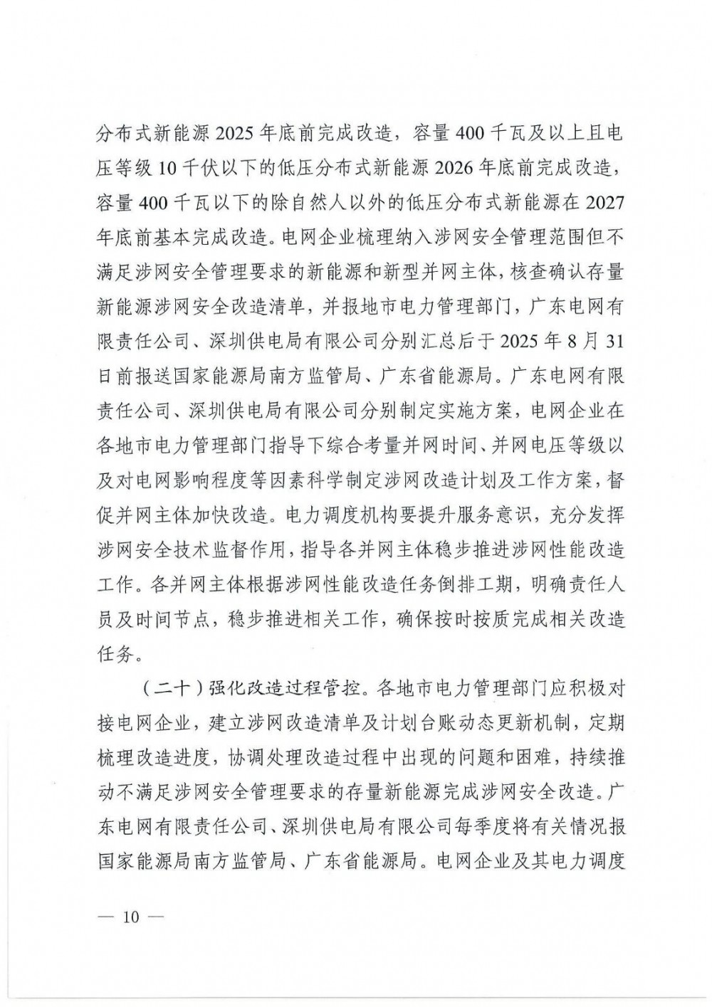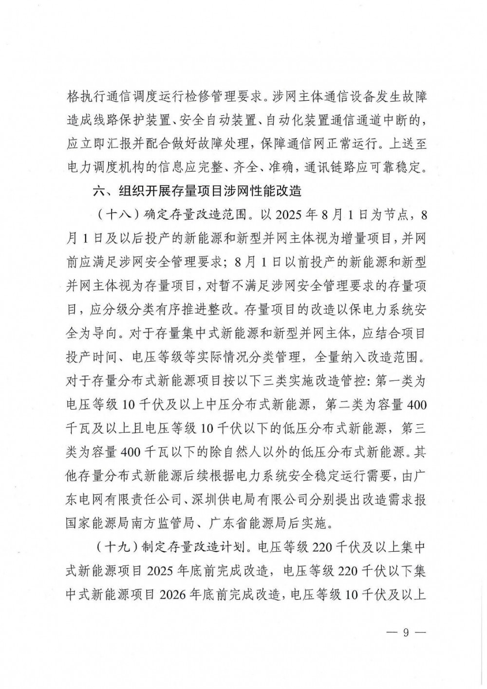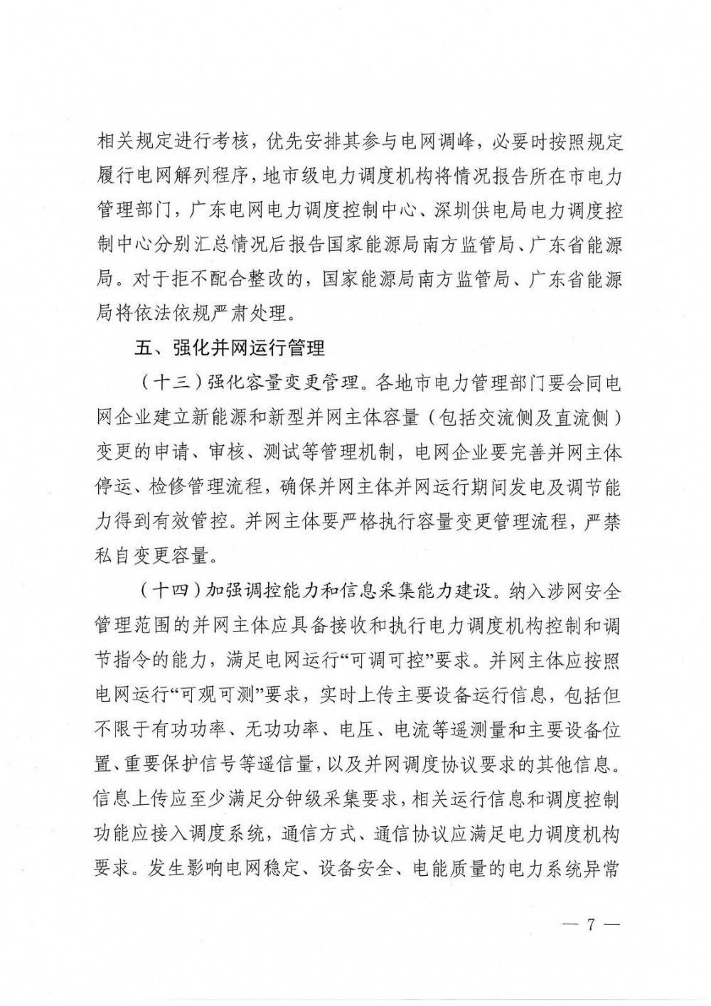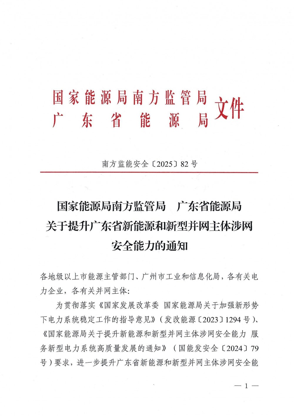 8月1日,国家能源局南方监管局发布关于提升广东省新能源和新型并网主体涉网安全能力的通知,其中提到,明确涉网安全管理范围。应纳入涉网安全管理范围的并网主体包括海上风电、陆上风电、集中式光伏、分布式光伏、分散式风电等全部新能源,以及新型储能、虚拟电厂等全部新型并网主体。电力调度机构应根据国家标准及行业标准等规定要求,分类提出涉网安全管理要求,将必须管的管到位。纳入涉网安全管理范围的并网主体均应服从调度统一指挥,按照电力调度机构有关要求加强涉网安全管理。并网主体涉网设备包括但不限于风力发电机、光伏逆变器、储能变流器、静止无功补偿器(svc)、静止无功发生器(svg)、调相机等一次系统设备,自动发电控制(agc)、自动电压控制(avc)、有功及无功控制系统、继电保护及安全自动装置、相量测量装置(pmu)及通信、自动化及网络安全设备等与涉网安全相关的二次系统设备。