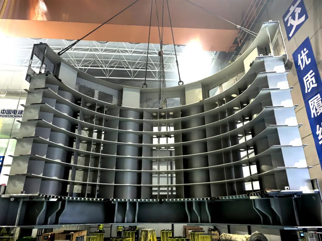 目前,定子机座整体结构稳固,各连接面贴合严密,焊接区域清理完毕,工装夹具定位可靠,一次性通过业主、厂家、监理、设计联合验收,具备焊接条件。