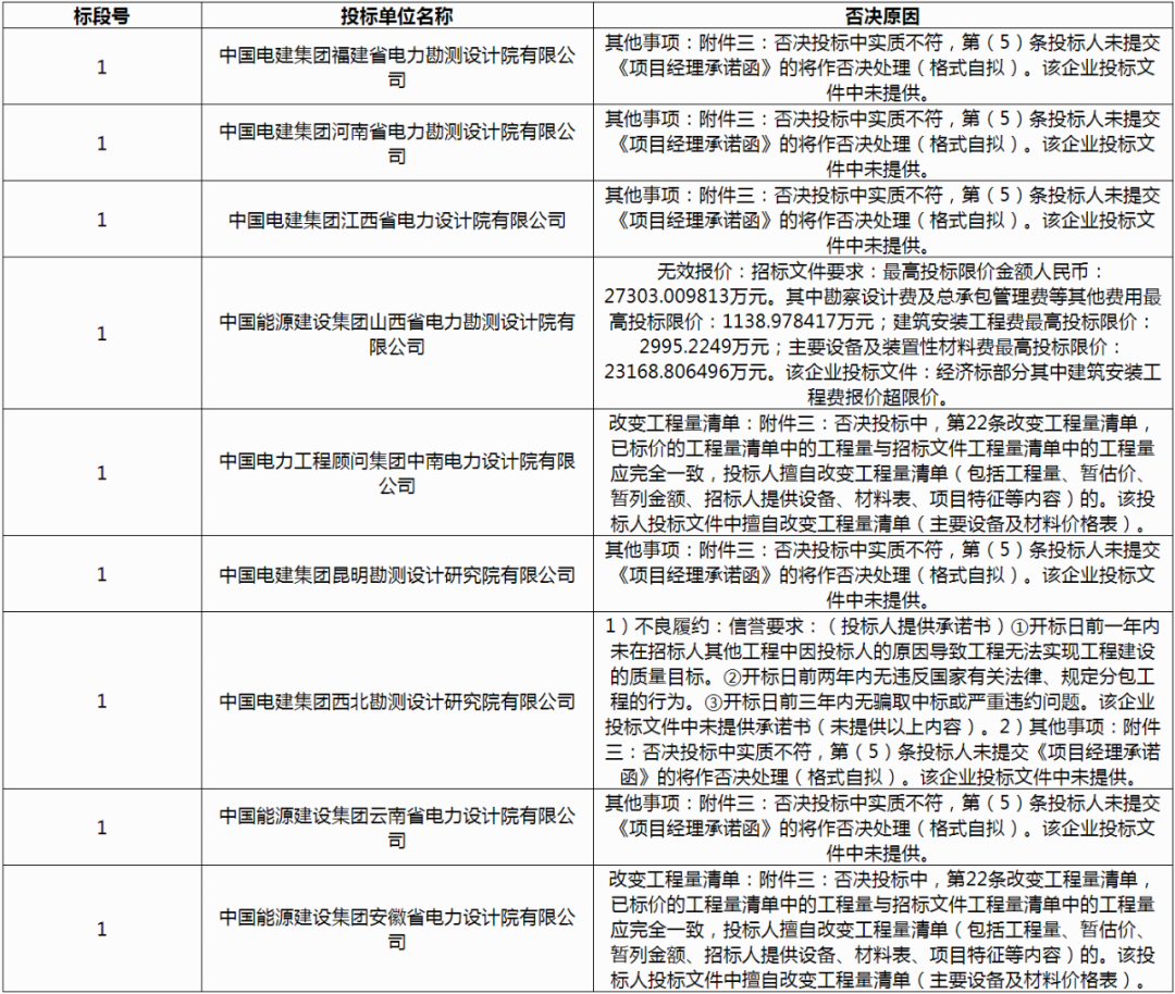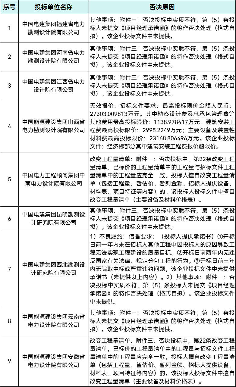 中标公示显示,此次招标,有9家投标单位被否决,具体如下: