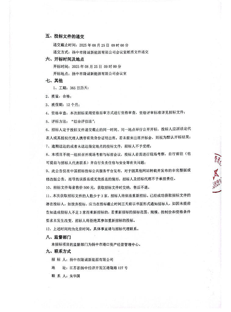 招标 | 144mw/288mwh!江苏扬中经开区港兴路片区用户侧储能建设项目招标