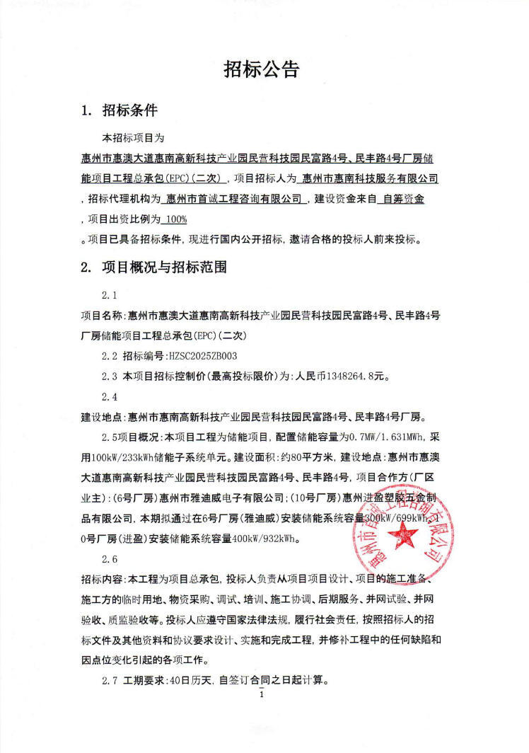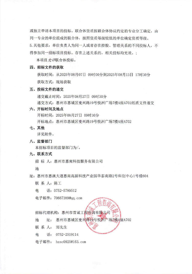 工程总承包(epc)(二次)招标公告发布,招标人为惠州市惠南科技服务有限公司。