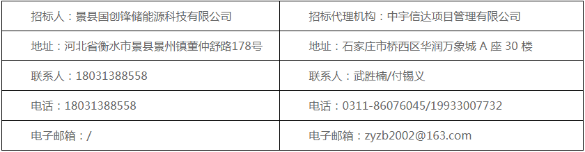 招标项目名称:景县国创锋储能源100mw/400mwh独立储能项目