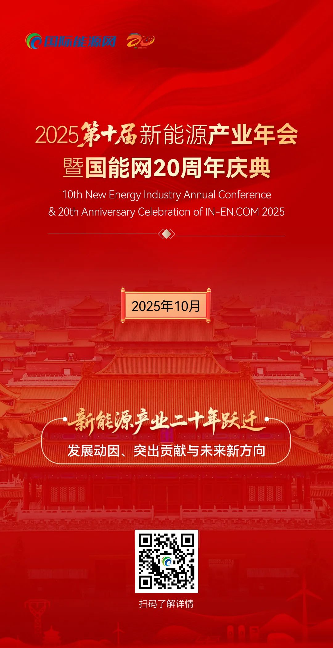 2025第十届新能源产业年会暨国能网20周年庆典由、国能能源研究院联合主办,将于2025年10月盛大开幕。本次大会将聚焦风、光、储、氢、充五大新能源行业板块,同期举办开幕式、院士报告、主题论坛、高峰对话、闭门研讨、颁奖典礼等系列活动,汇聚行业领导、产业专家的真知灼见,展示产业链企业之先进技术与k8凯发的解决方案,分享产业链设计规划企业、投资商之成功经验,交流、探讨产业发展之路径与趋势。