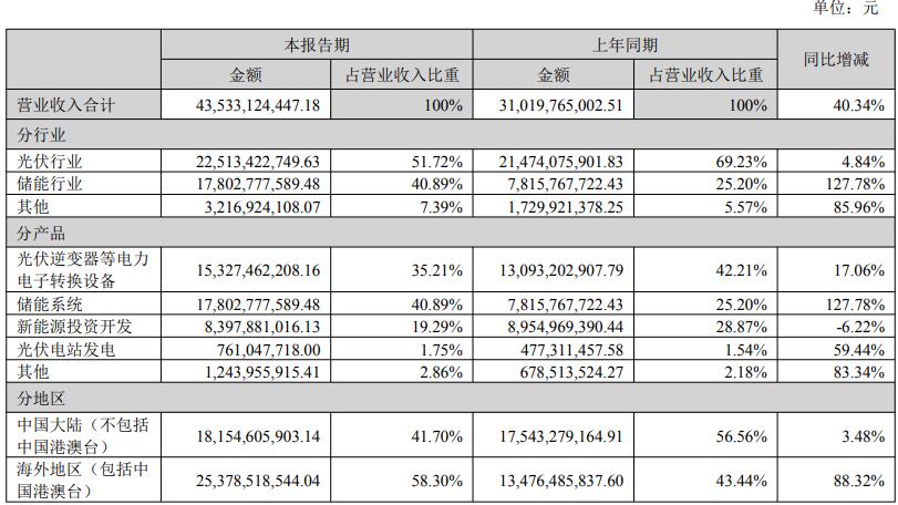 2025年上半年,阳光电源储能业务收入178.03亿元,占总收入比重40.89%,较去年大幅增加。