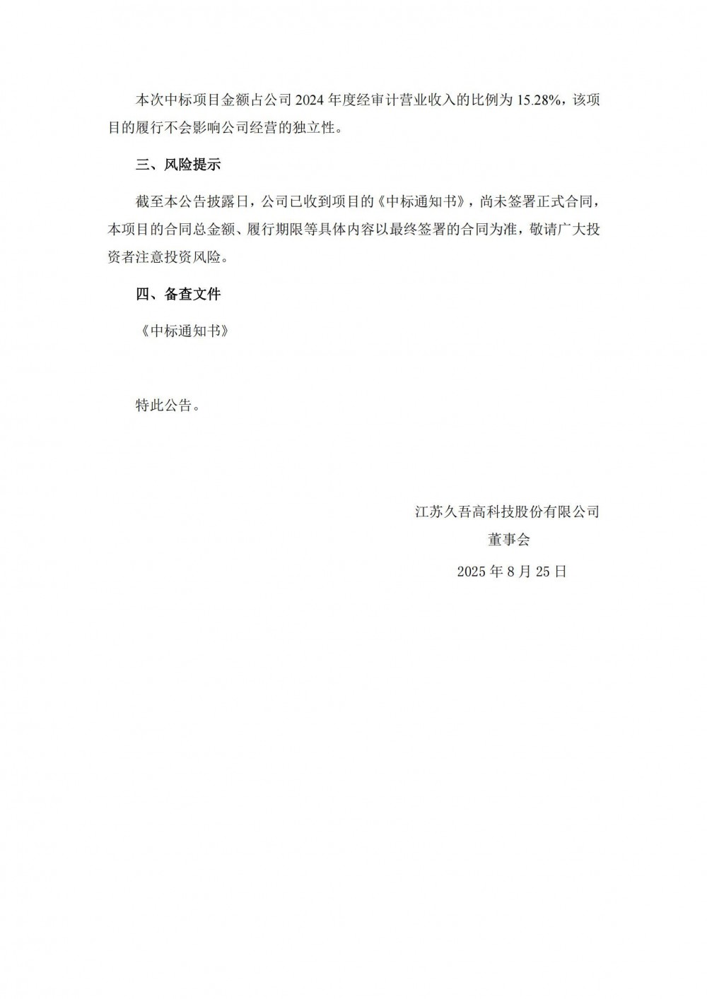 8月25日晚,久吾高科发布公告称,公司收到了“国投新疆锂业有限公司罗布泊盐湖老卤提锂综合利用扩能改造工程-膜处理系统采购”项目《中标通知书》,中标金额8150万元,占公司2024年度经审计营业收入的比例为15.28%。