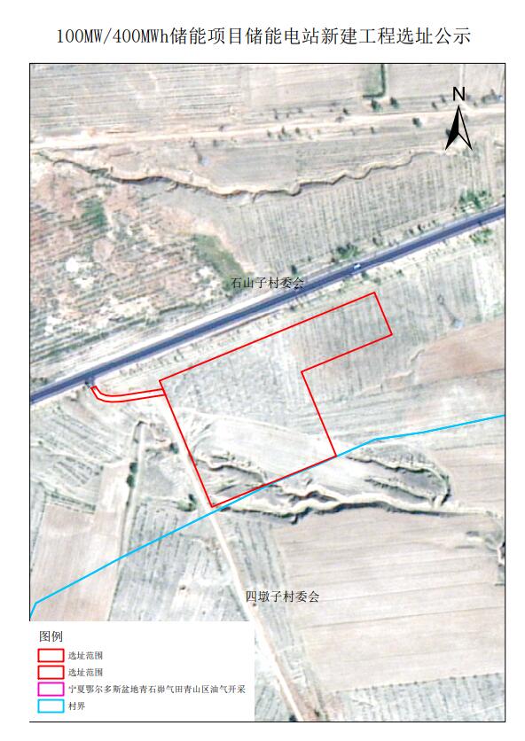 8月25日,盐池县自然资源局发布100mw/400mwh储能项目储能电站新建工程选址公示。