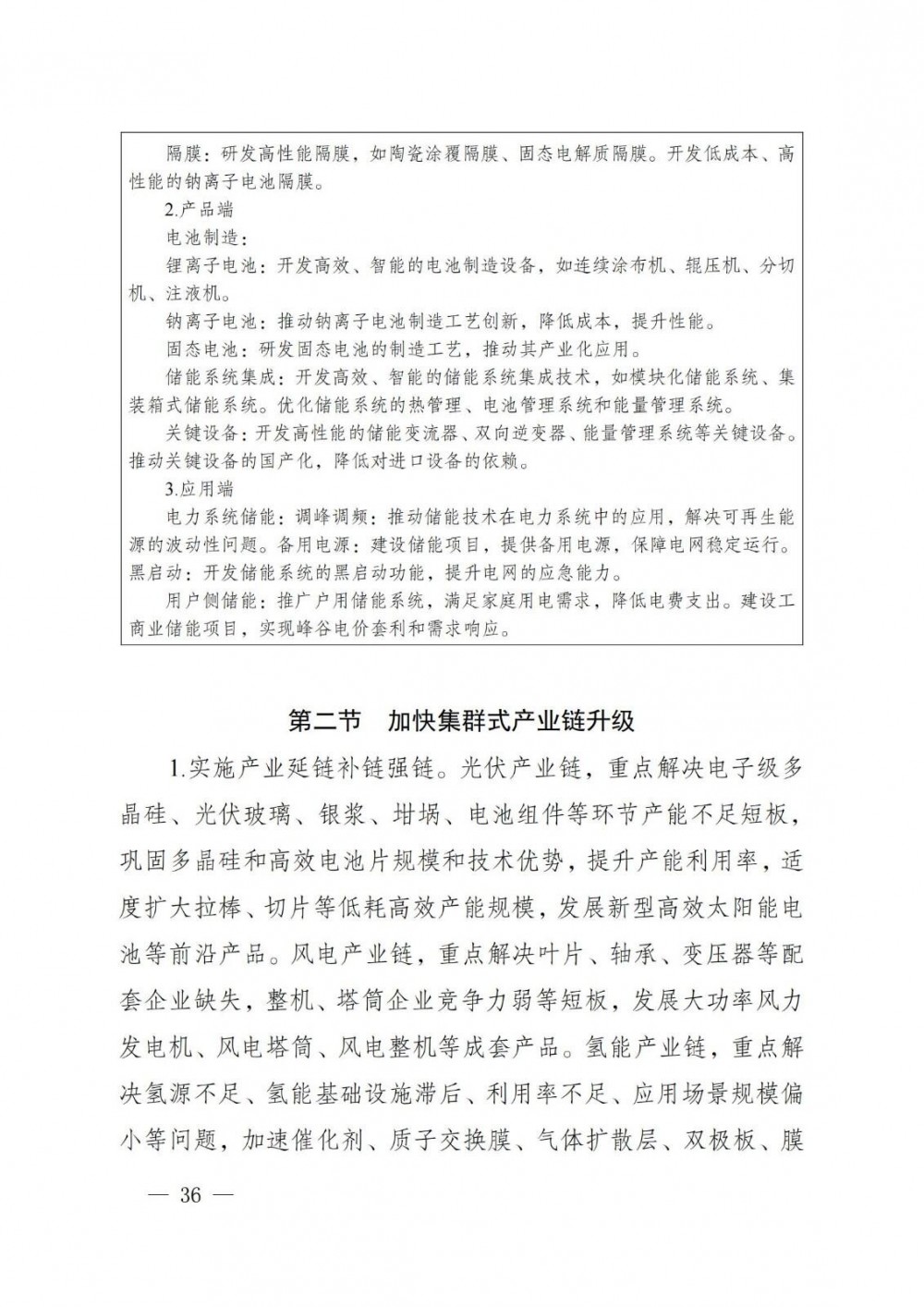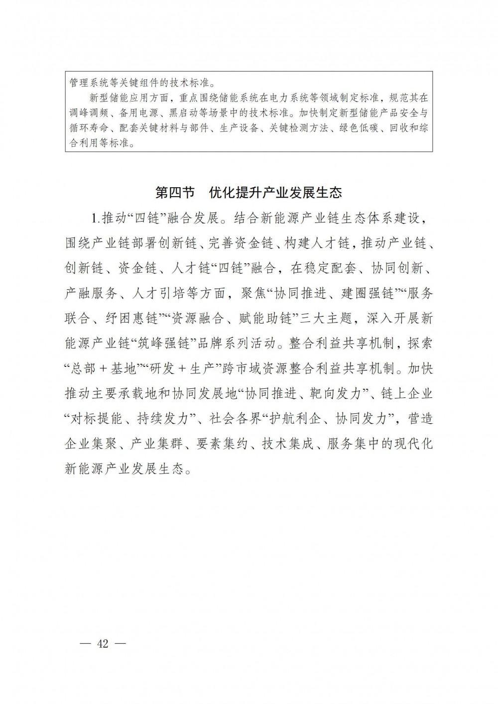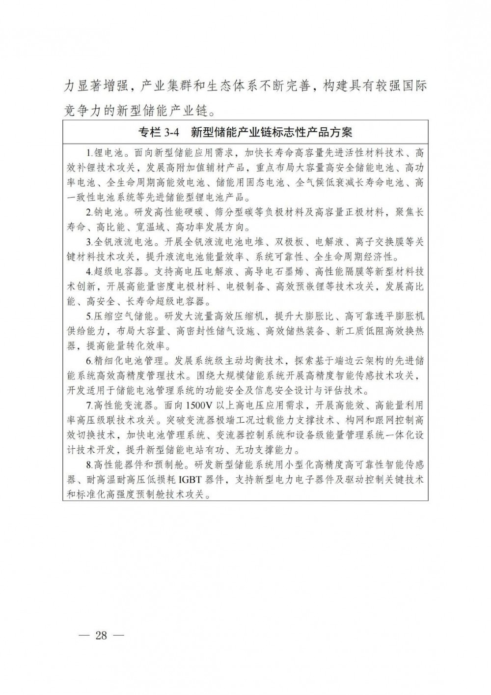 文件提出,围绕“新型储能材料研发—系统集成—储能装备—装备回收”全产业链,构建多技术路线协同、安全高效的新型储能产业体系。面向多类型、多时间尺度、大规模应用场景储能需求,促进新型储能技术产品多元化发展,突破高效集成、智慧调控、全生命周期多维度安全等技术,大幅提升可靠性和转化效率。重点发展高安全性、长循环寿命、高能量密度储能锂离子电池,加快储能用固态电池、钠离子电池、全钒液流电池等技术研发和产业化进程,积极推进氢储能、压缩空气储能、重力储能等储能技术研发和应用。推动建立健全新型储能技术标准、管理、监测、评估体系,保障新型储能示范安全可靠。积极发展电网侧储能、稳步推进电源侧储能、灵活发展用户侧储能。电网侧新型储能优先在区域电力缺口较大、负荷峰谷差明显、电源就地支撑规模不足的点位布局。在送出输电通道不受限、新能源大规模汇集的断面,适当合理配置电网侧新型储能。在“三州一市”等新能源资源富集地区,结合新能源消纳利用和支撑保供需要,科学配建电源侧新型储能。