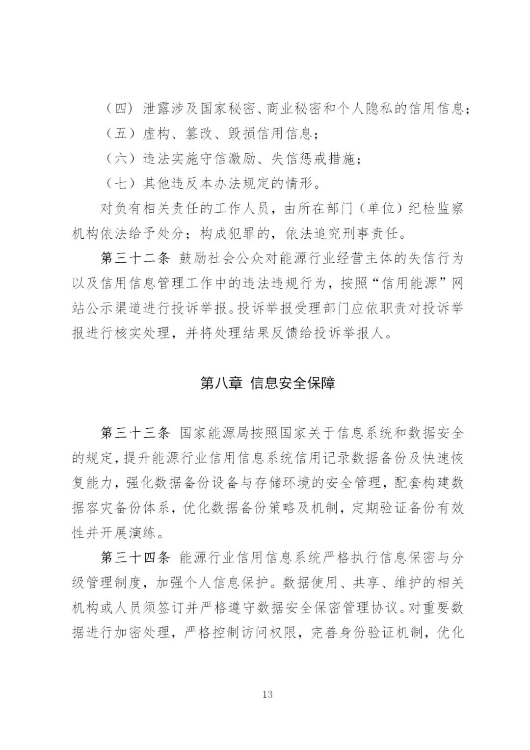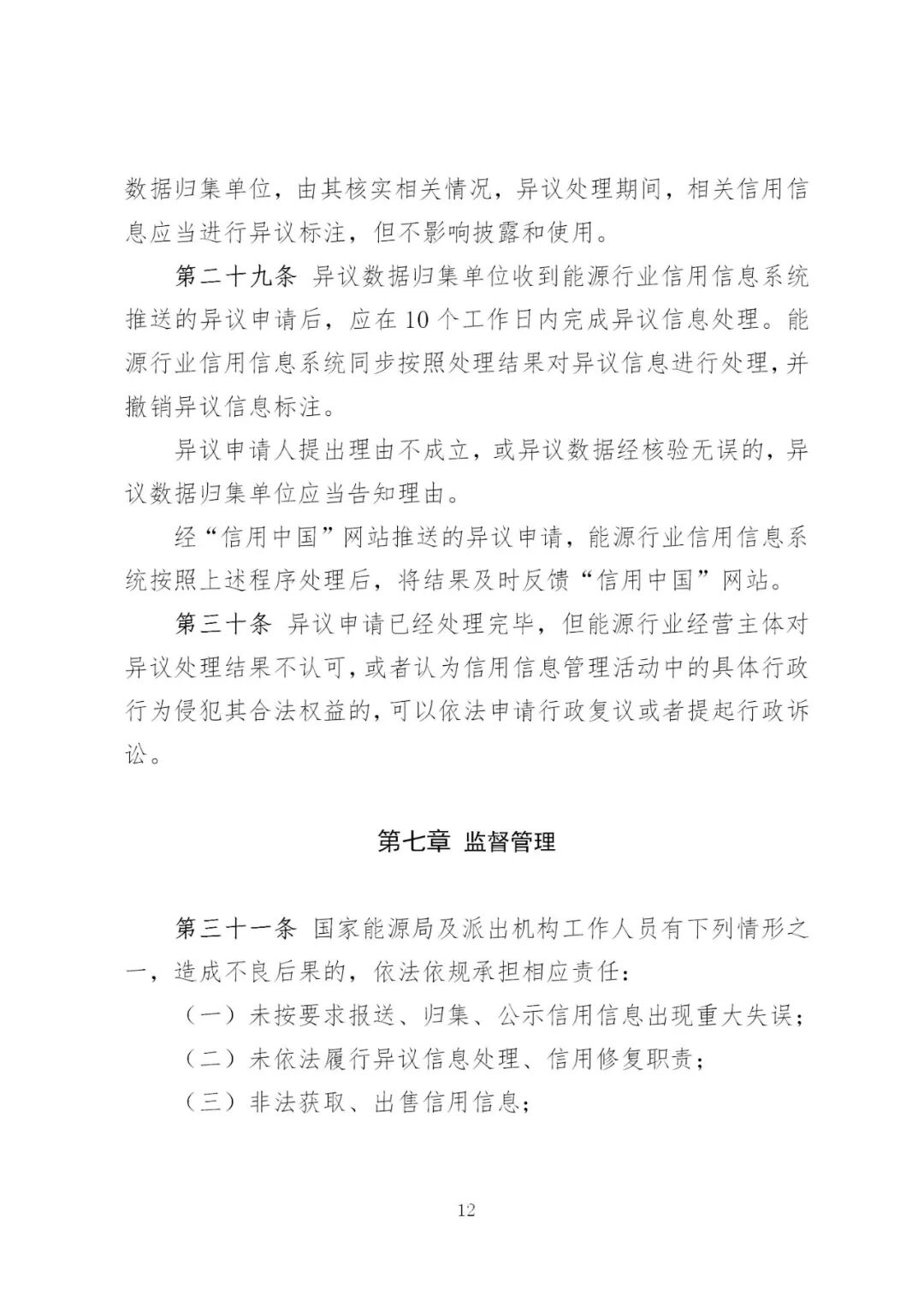其中提到,国家能源局负责统筹规划和协调推进能源行业公共信用信息管理工作,研究决策重大事项、审定发布相关制度和标准,指导能源行业信用信息系统和“信用能源”网站建设。