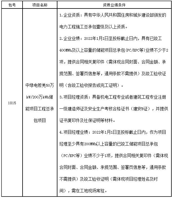 要求投标人具有不少于2项已竣工400mwh及以上容量的储能项目总承包(pc/epc等)业绩。各投标人可就本次招标的部分或全部标包投标。