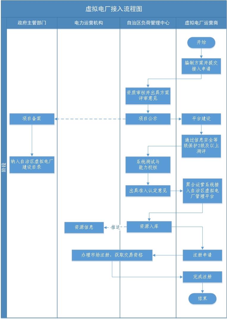 (五)资质审核。项目完成建设后,系统应通过具备资质的第三方测评机构的网络安全检测认证,取得相应等级的信息安全等级保护测评报告后,由自治区电力负荷管理中心组织开展虚拟电厂准入资质审核(详见附件1)。虚拟电厂资质及能力测试满足要求后,自治区电力负荷管理中心出具虚拟电厂准入认定意见,将聚合运营系统接入自治区虚拟电厂管理平台,并向自治区发展改革委备案。