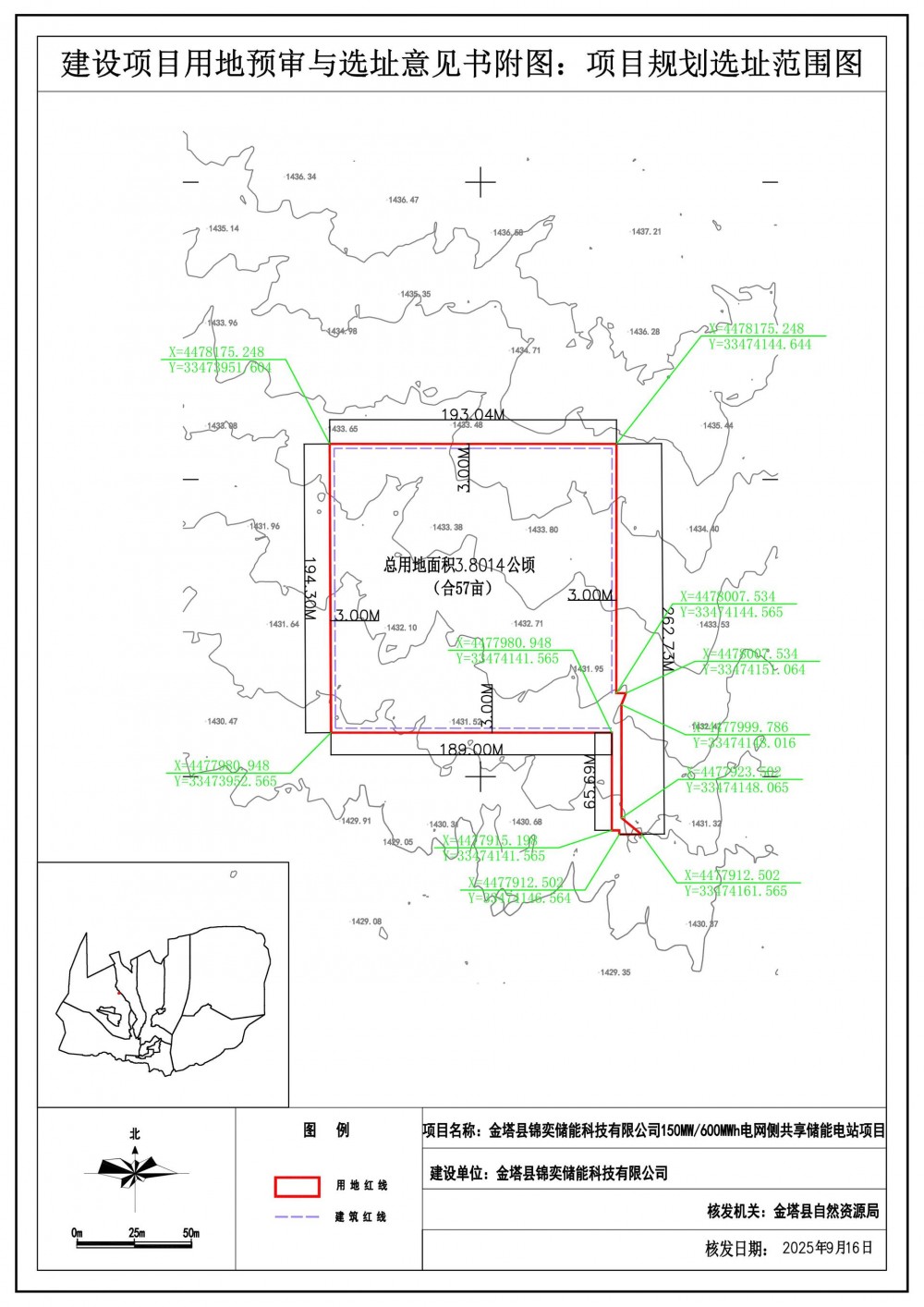 金塔县自然资源局关于金塔县锦奕储能科技有限公司150mw/600mwh电网侧共享储能电站项目用地预选批前公示