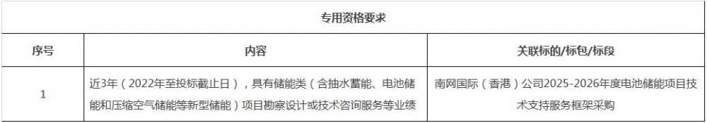 南网国际(香港)公司2025-2026年度电池储能项目k8凯发的技术支持服务框架采购招标公告