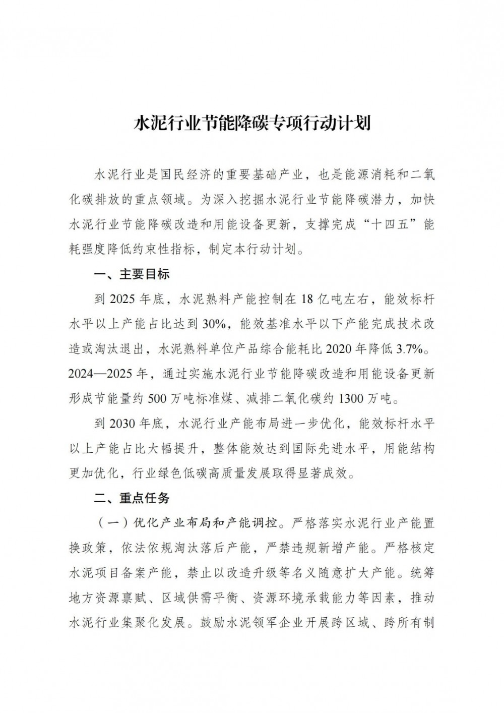 据能源圈了解到,6月7日,国家发展改革委、工业和信息化部、生态环境部、市场监管总局、国家能源局发布《水泥行业节能降碳专项行动计划》。