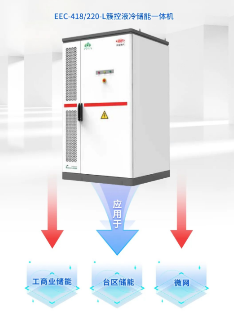 基于gbl232-215簇控式液冷储能模块,推出了eec-418/220-l簇控液冷储能一体机。eec-418/220-l簇控液冷储能一体机采用all-in-one设计,配备了高性能的磷酸铁锂电芯及自研3s控制器,结合液冷和多重防护系统,支持融合终端通讯、云平台显示。