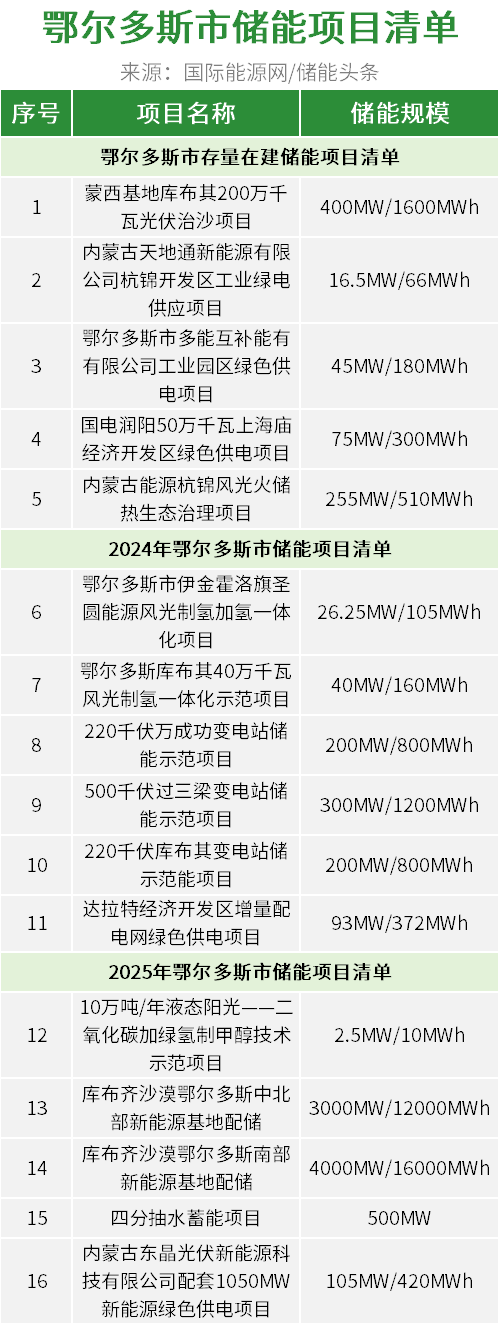 另外,随通知,鄂尔多斯市下发了多个项目清单,其中包括三类储能项目清单: